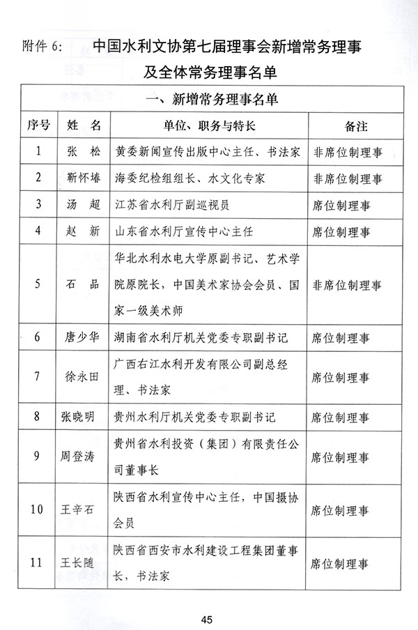 中國(guó)水利文協(xié)第七屆會(huì)員代表大會(huì)二次會(huì)議已于2018年4月24日在武漢召開。會(huì)議表決通過(guò)了第七屆理事會(huì)新增理事及常務(wù)理事名單。西安市水利建設(shè)工程集團(tuán)有限公司被吸收為新增單位會(huì)員常務(wù)理事單位,公司董事長(zhǎng)王長(zhǎng)隨同志被選舉為協(xié)會(huì)席位制理事。