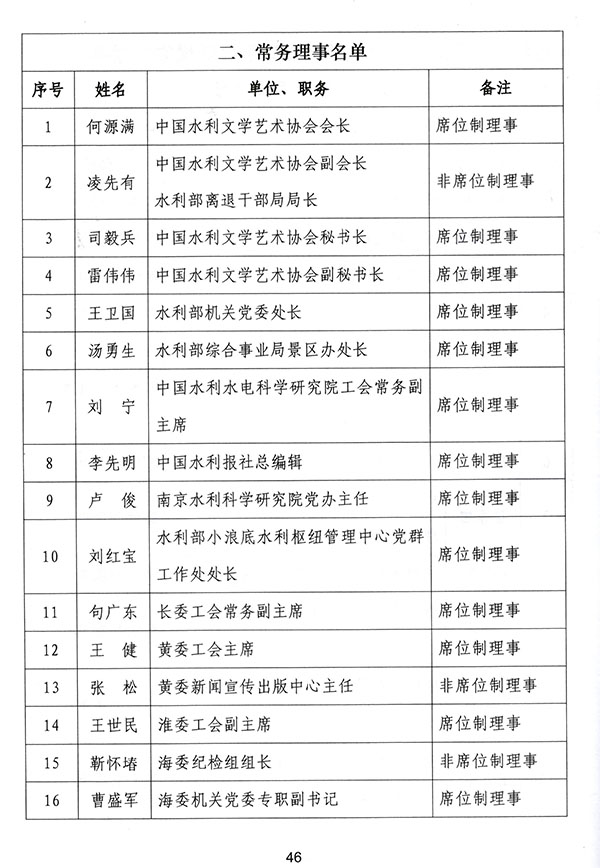 中國(guó)水利文協(xié)是全國(guó)水利系統(tǒng)關(guān)心支持水利文學(xué)藝術(shù)和水文化建設(shè)工作的有關(guān)單位及藝術(shù)家、水文化專家自愿結(jié)成的學(xué)術(shù)性、專業(yè)性、行業(yè)性、非營(yíng)利性的社會(huì)組織。一直以來(lái),水利文協(xié)繼承“文以載道”“藝以弘道”傳統(tǒng),大力弘揚(yáng)“獻(xiàn)身、負(fù)責(zé)、求實(shí)”的水利行業(yè)精神,致力于展示和宣傳水域水生態(tài)環(huán)境的變遷,反映水美中國(guó)與新時(shí)代水利現(xiàn)代化建設(shè)取得的成就,展現(xiàn)水利行業(yè)精神文明建設(shè)成果和水利人無(wú)私奉獻(xiàn)的精神風(fēng)貌!